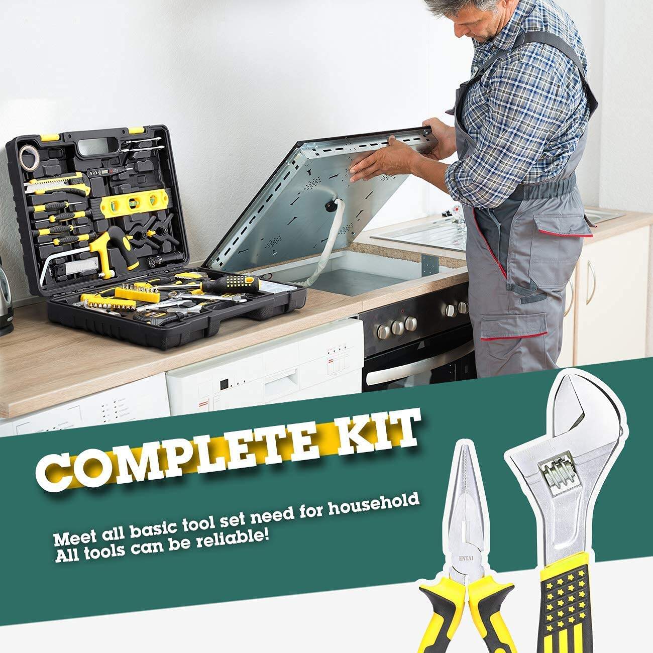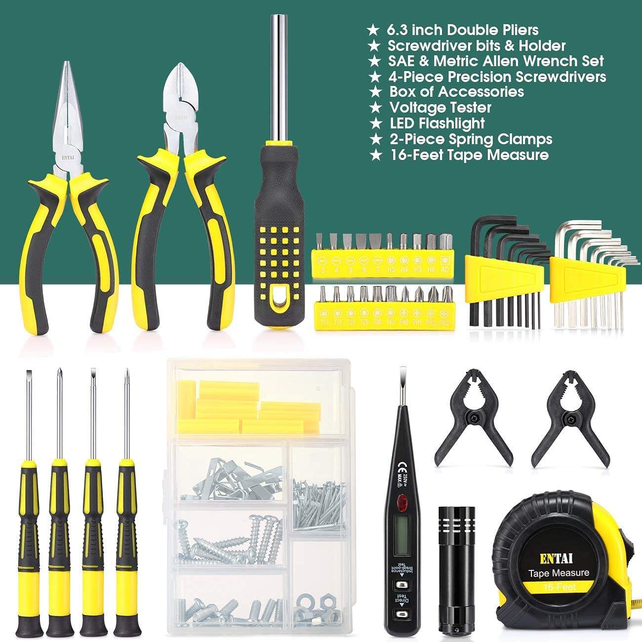 .218-Piece Tool Kit for Home, General Household Hand Tool Set with Sol