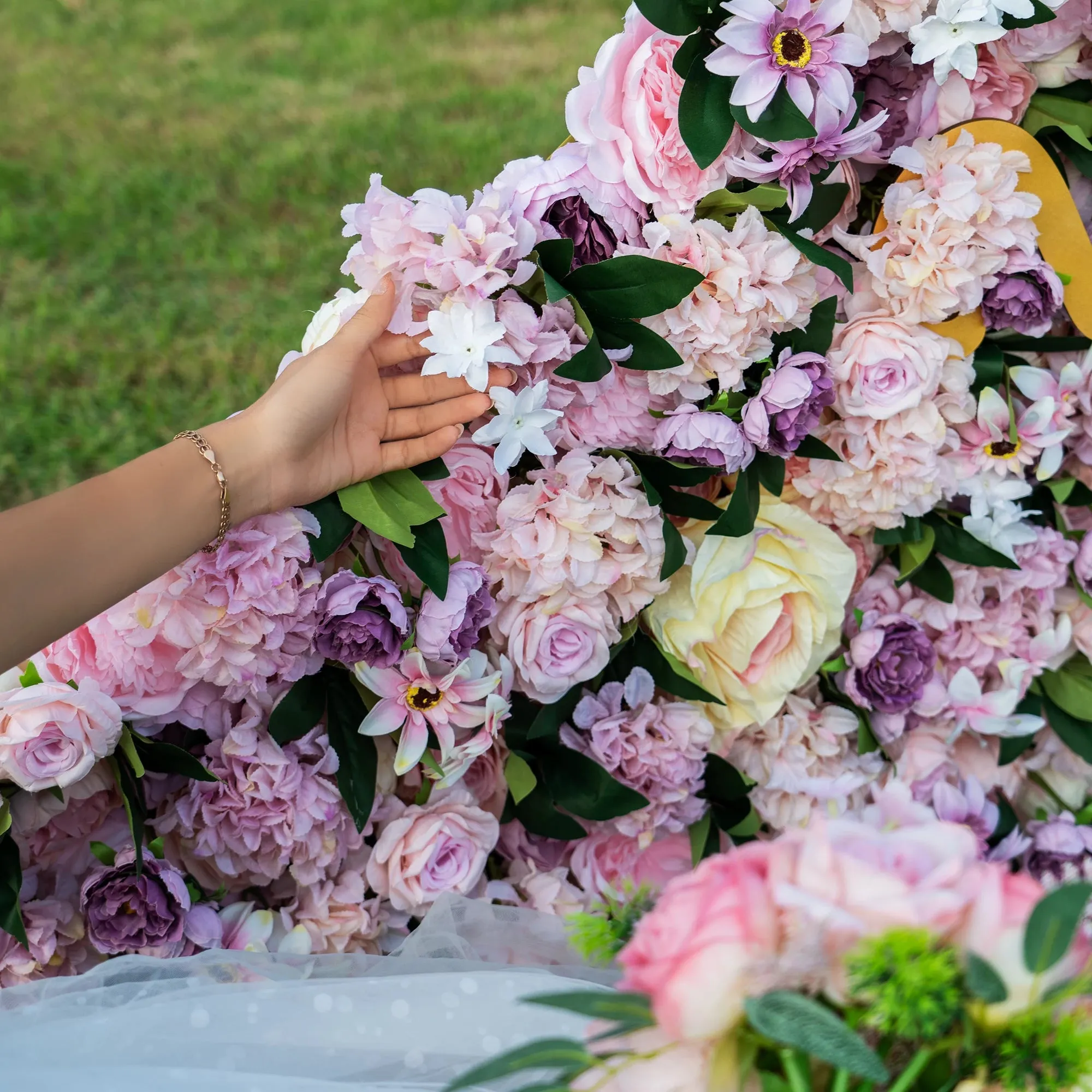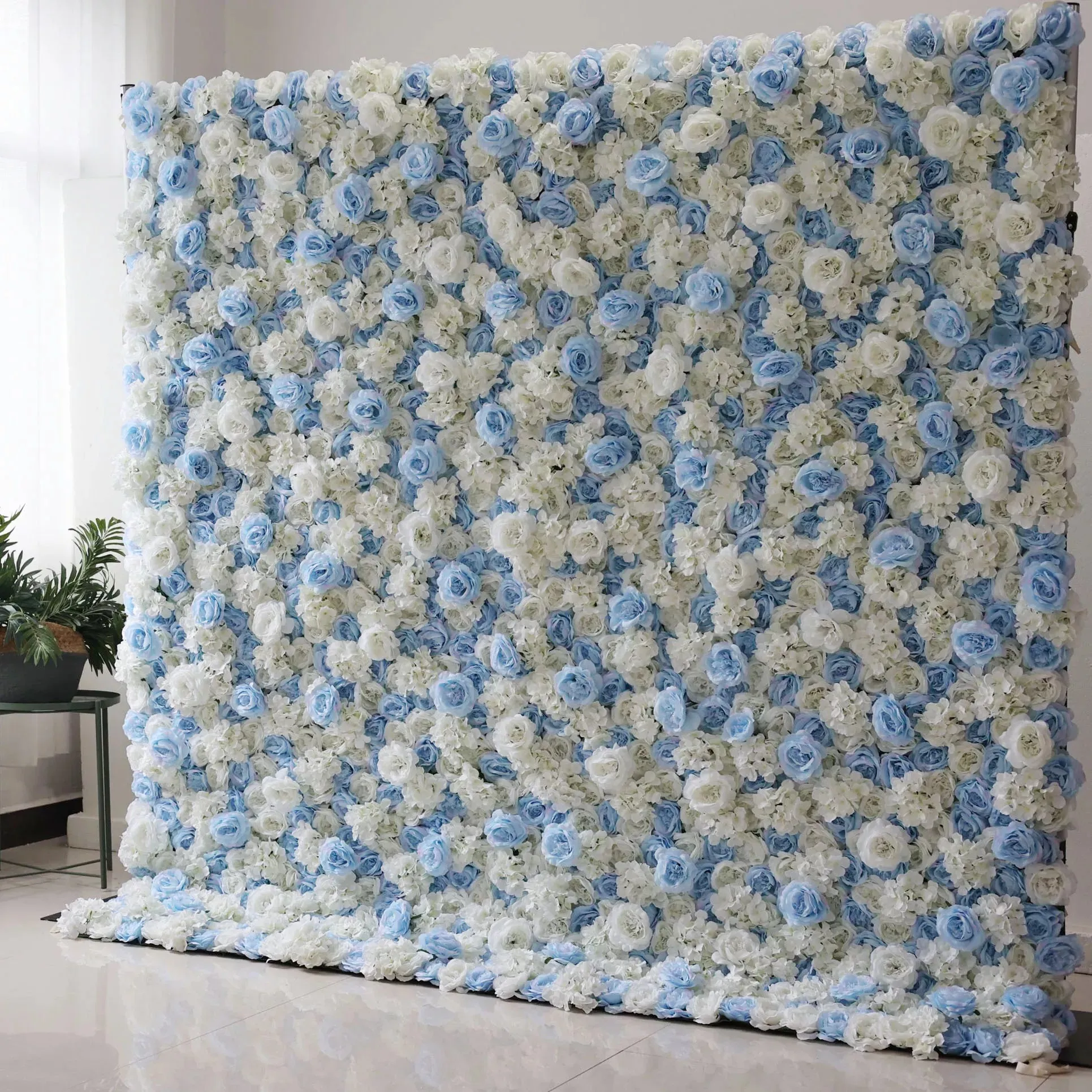 Roll Up Fabric Artificial Flower Wall Wedding Backdrop, Floral Party Decor, Event Photography-VF-031