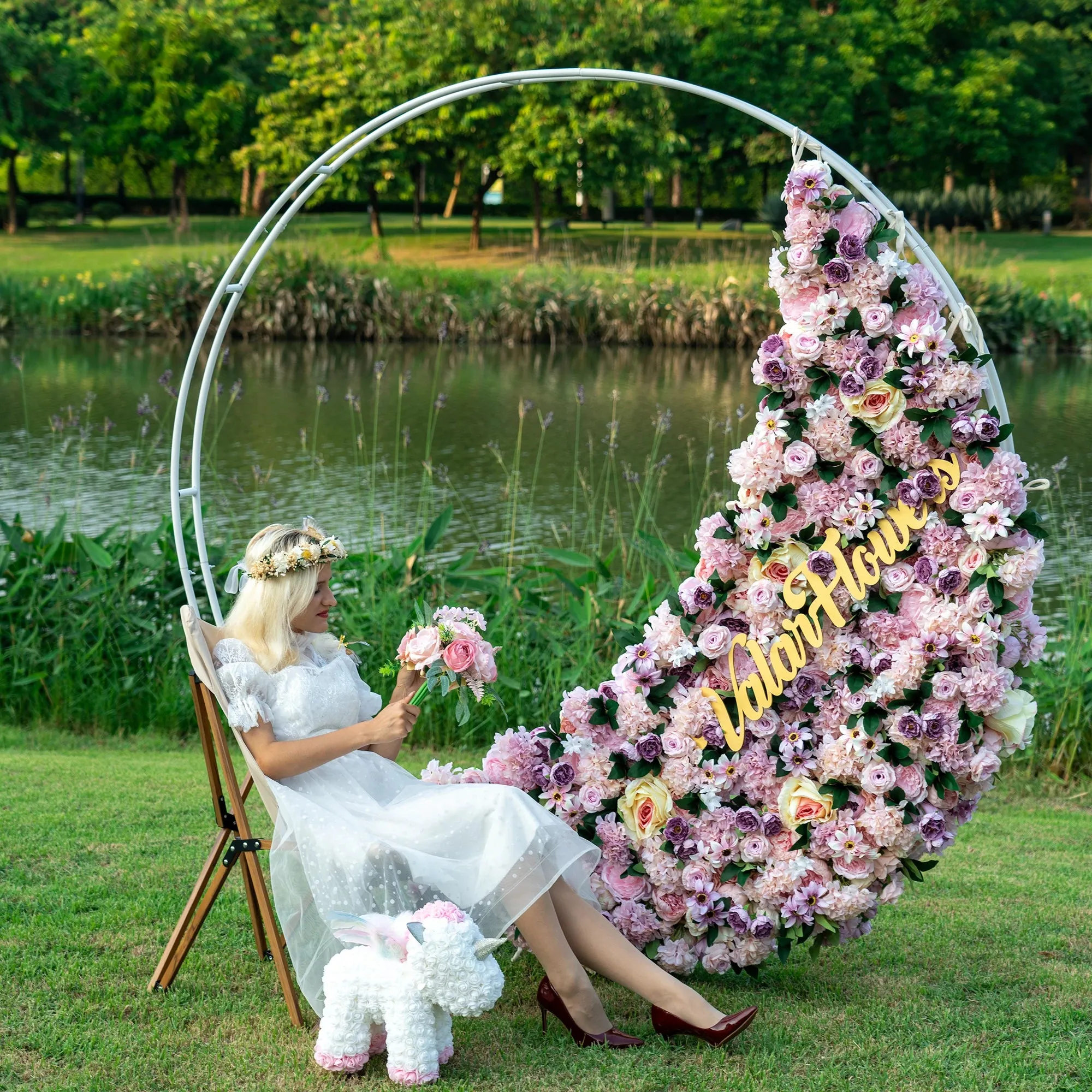 Roll Up Fabric Artificial Flower Wall Wedding Backdrop, Floral Party Decor, Event Photography-VF-296