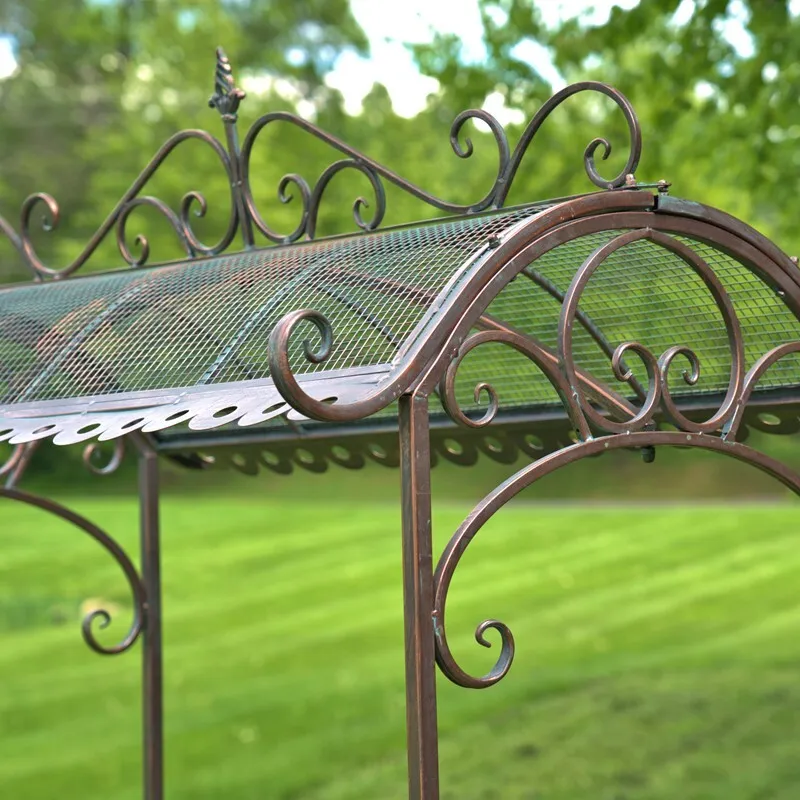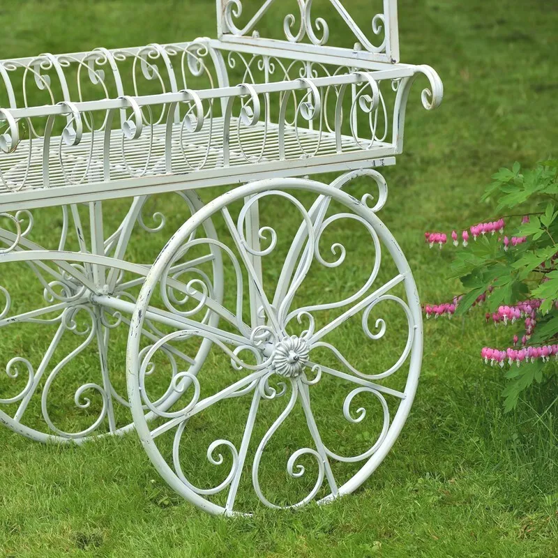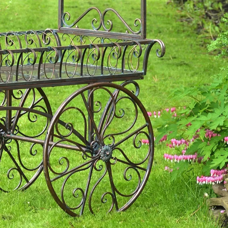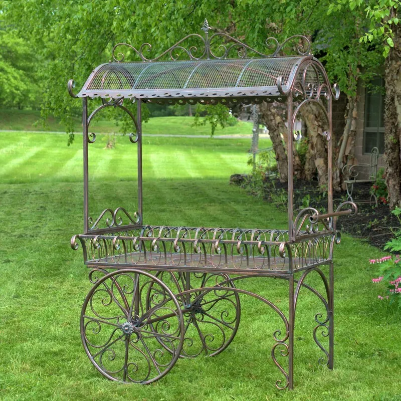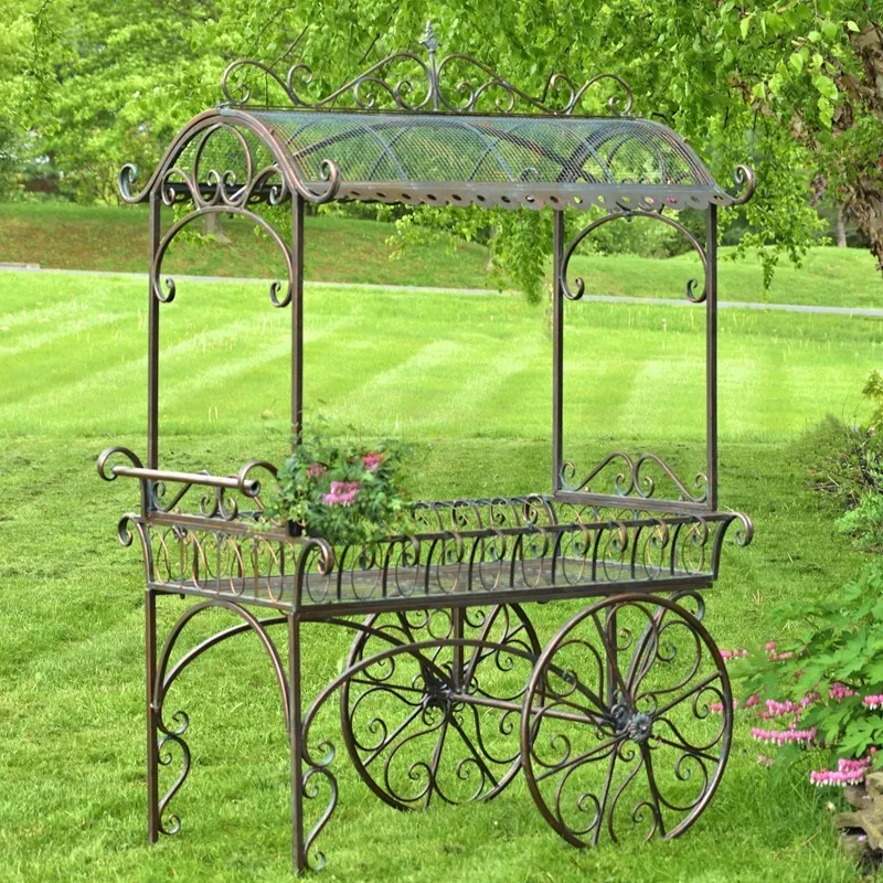 LARGE IRON FLOWER CART WITH ROOF