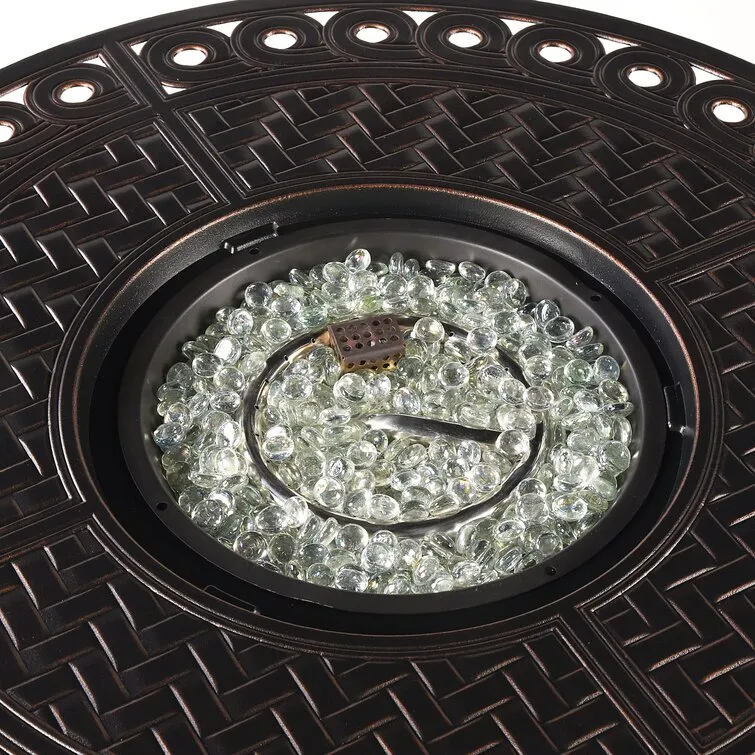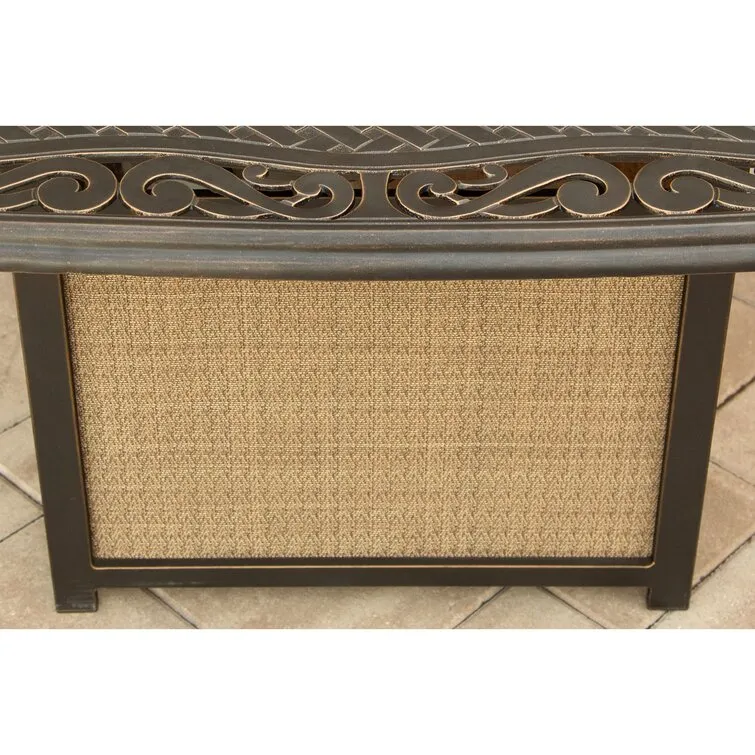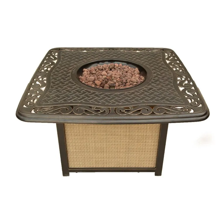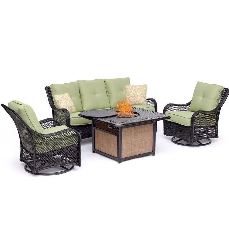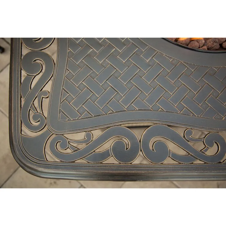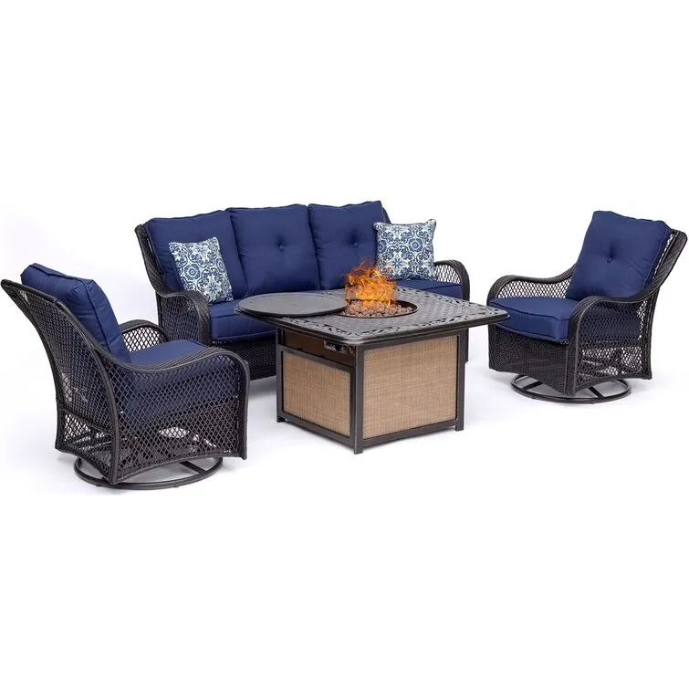 Outdoor Aluminum 42 In. Square Fire Table Set With Four Deep Seating Swivel Rocking Chairs, Fire Beads, Lid, Propane Tank Cover And Table Fabric Cover