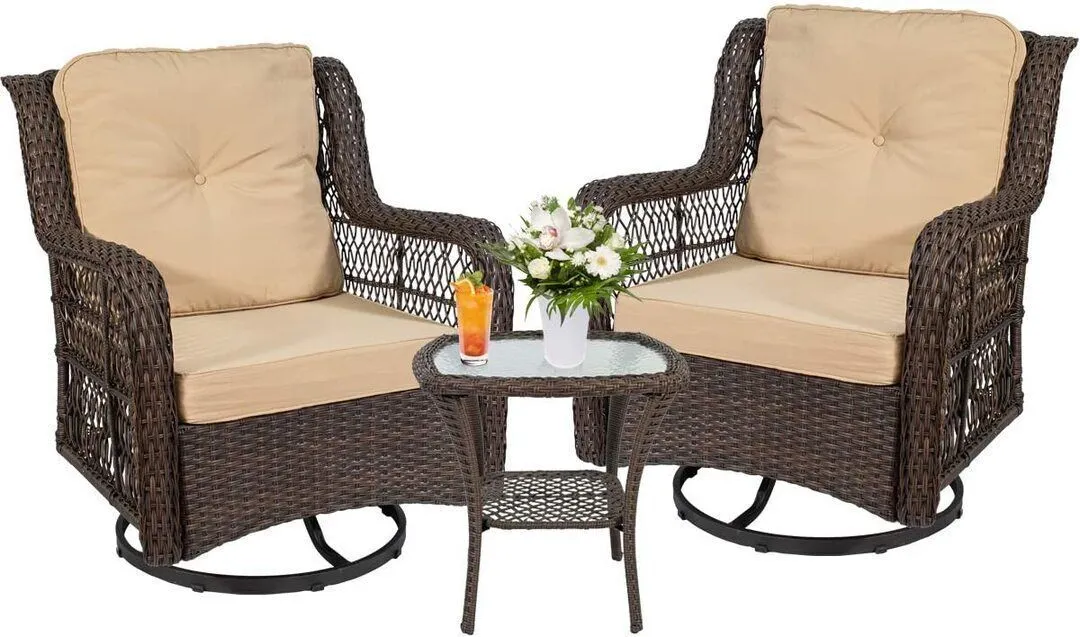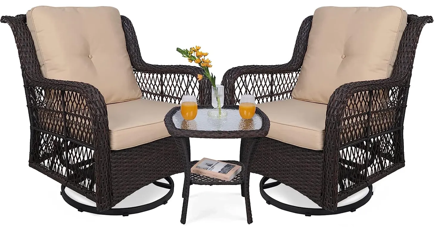 Outdoor 3-Piece Swivel Patio Chairs