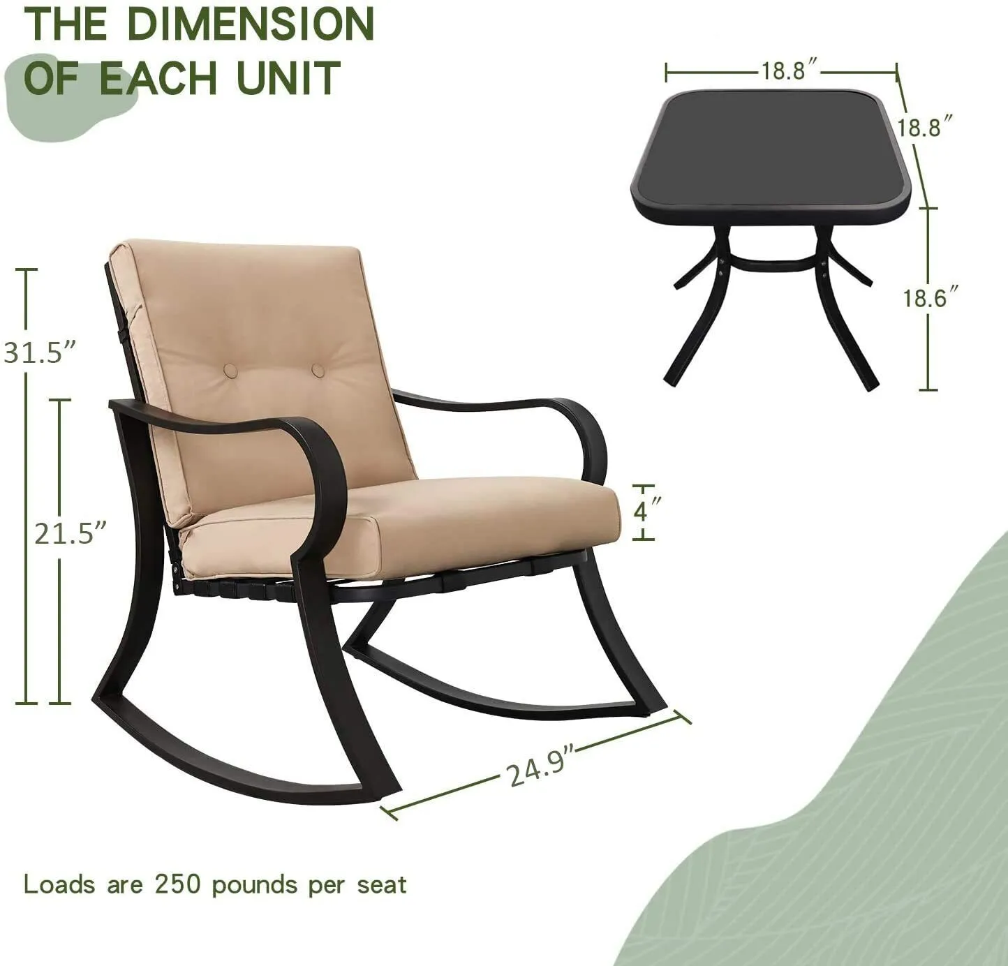 Patio Chairs 3 Piece Outdoor Rocking Chairs