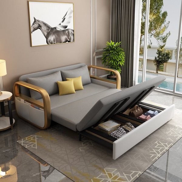 Foldable Multifunctional Wood Sofa Bed With Storage